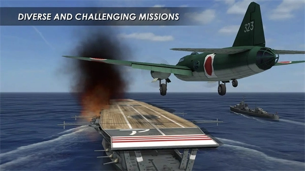 4、丰富多样且充满挑战的任务类型,涵盖航母着陆、空中混战、俯冲轰炸、鱼雷攻击、护航行动等多个方面。