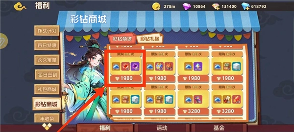 3、仙缘活动更新时,用来买钻石特惠礼包