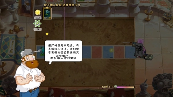 5、关卡接近尾声时会突然涌现一大波僵尸,此时疯戴夫会提示你使用氪金道具