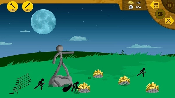 主界面会呈现战斗场景。屏幕左边有你的要塞、一座雕像以及金矿脉。若想了解敌军情况,可在屏幕上向右滑动。通过这种方式,你能掌握敌人发起进攻的时间,并判断自己获胜的可能性。