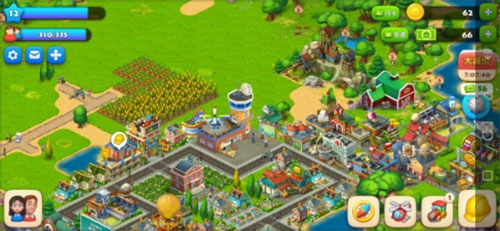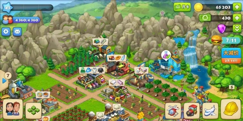 《梦想城镇》操作简单,新手引导阶段会有动画演示操作流程。玩家开局时可跟随动画指引,一步步学习种植庄稼、建造房屋建筑、生产农副产品,还能通过直升机将各类产品配送至居民住处,以此完成订单任务。