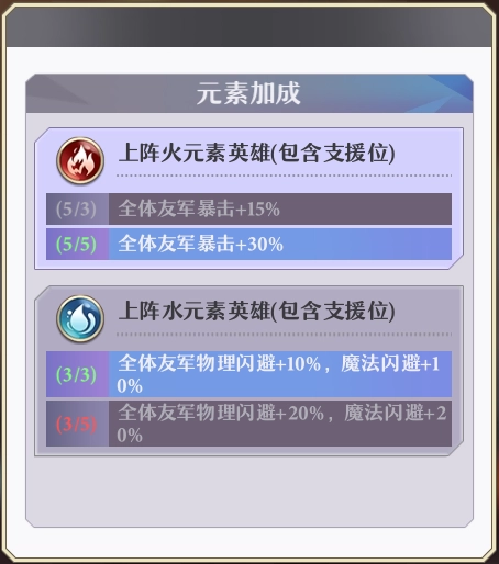 不足:可能会面临技能能量短缺的情况,需要合理释放英雄技能。同时全地元素阵容更容易被克制,面对对方五火元素阵容时会比较难打。