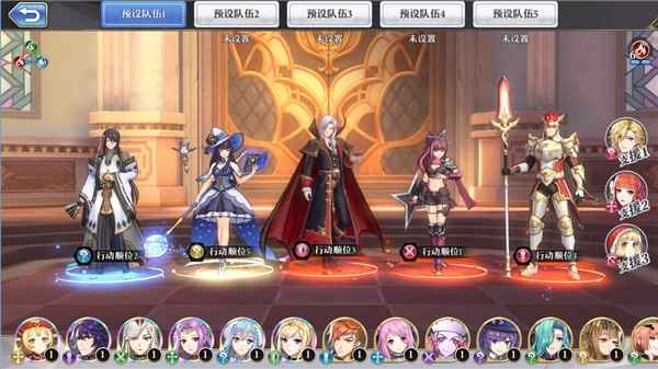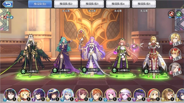 每次出击时,设置有5个上阵位置和3个支援位置。阵容的整体搭配逻辑为“5+3”模式,意味着所有位置都需要填满。
