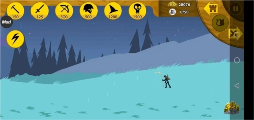 主画面会呈现战斗地点。屏幕左侧分布着您的要塞、一座雕像以及金矿脉。若想研究敌军,可在屏幕上向右滑动。在此处,您能够追踪敌人发起进攻的时间,并评估自己获胜的概率。