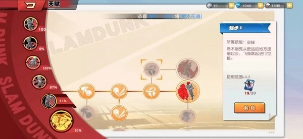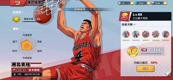 不同玩家有着各异的操作习惯,因此在选择解锁天赋的顺序上也会存在较大差异。以樱木花道为例,他的技能包括:飞人(大招)、飞身篮板、庶民上篮、超级加速、哼哼防守以及扑球。