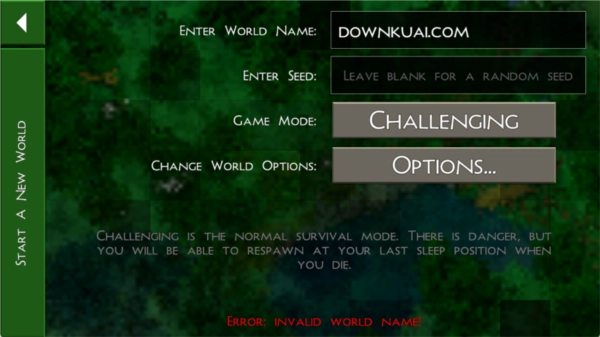 3、对地图信息进行设置,涵盖名称、种子、模式以及出生点难度等各项参数。