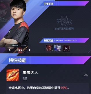 ◆每位选手都拥有自己的熟练英雄,初始品质为SSR的选手还具备专属的招牌英雄。在对局过程中,若选手选用了熟练英雄或招牌英雄,便能获得相应的对局加成效果。