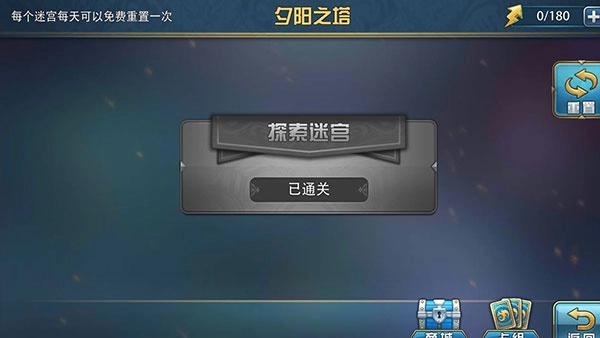 在地图2到8中,只要完成某张地图所有关卡的一星通关条件,就能解锁对应的地图迷宫。迷宫的每一层都分布着若干宝箱和怪物,击败宝箱可获取奖励(有概率得到五星优质卡牌,也就是常说的“塔货”),而击败怪物则没有奖励。每个迷宫里,玩家每天都能免费获得一次重置迷宫和使用一键刷塔功能的机会(一键刷塔可以选择跳过怪物,只挑战宝箱)。要是想再次重置迷宫或者使用一键刷塔功能,就需要消耗一定数量的钻石(月卡用户使用一键刷塔功能时也需注意相关规则)。在部分收集类活动期间,迷宫宝箱会掉落活动所需的收集材料,玩家需要根据目标收集数量来合理安排迷宫重置次数(选择跳过怪物刷迷宫的方式能节省不少体力)。