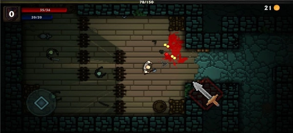 5、楼层越高,挑战难度就越大。墙壁会主动释放武器,怪物也会投掷武器发起攻击,玩家可能会陷入中毒状态,导致血量持续减少,同时屏幕还会出现闪烁的效果。