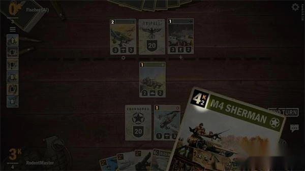 每个回合开始时,从卡组里抽一张牌放到手牌中。一副卡组一共是40张卡牌,里面来自同盟国家的卡牌最多不能超过12张。
