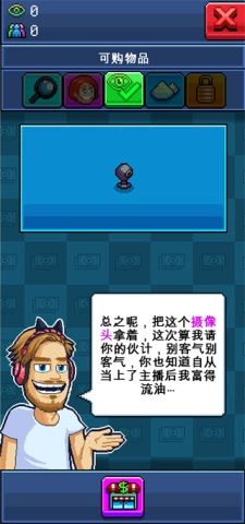在现代社会,视频博主这一职业大家都已颇为熟悉。游戏解说、美妆教学,还有各类新奇有趣的实验视频……源源不断的新鲜内容令人应接不暇。而且足不出户,就能轻松在家获取收入,简直是宅家一族的理想职业。有没有幻想过,有朝一日你能成为最时尚、最具传奇色彩的主播,超越那些月入百万的同行?主播模拟器,为你开启无限可能!这是一款主打竖版像素美术风格的经营养成游戏,它将带你踏上一段全新的主播征程。从一间空荡荡的房间开始,一步步打造专属于你的酷炫直播空间。