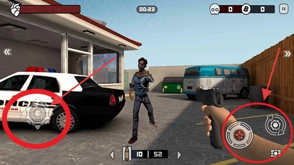 3、进入关卡后便能开启闯关之旅。屏幕左侧设有控制人物移动的按钮,屏幕右侧则是攻击、换弹以及换武器的按钮。操控人物成功击败丧尸,就算顺利过关。