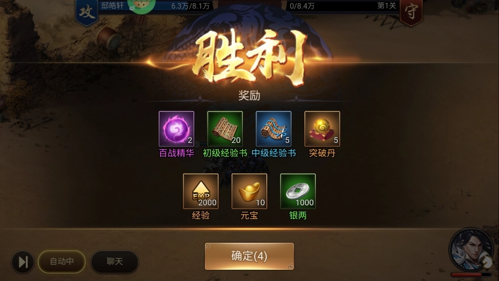 6、最后,玩家胜利,会取得相应的奖励。