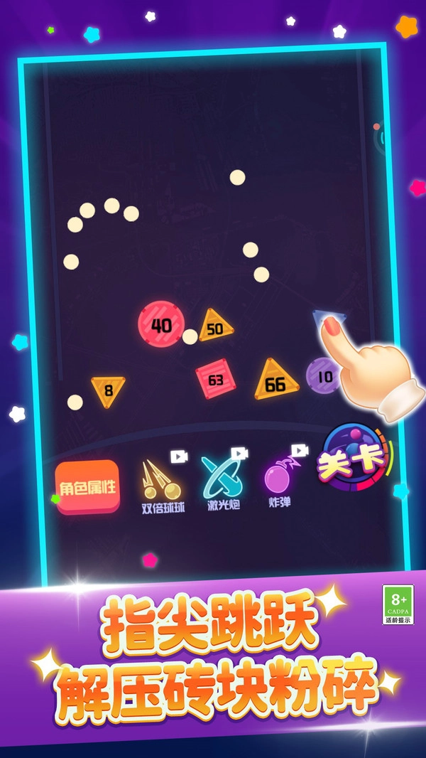2、当方块碎裂之际,粒子特效与数字如潮水般迸发,再配上炫光流动的动态背景,每一次击打都极具视觉冲击力。