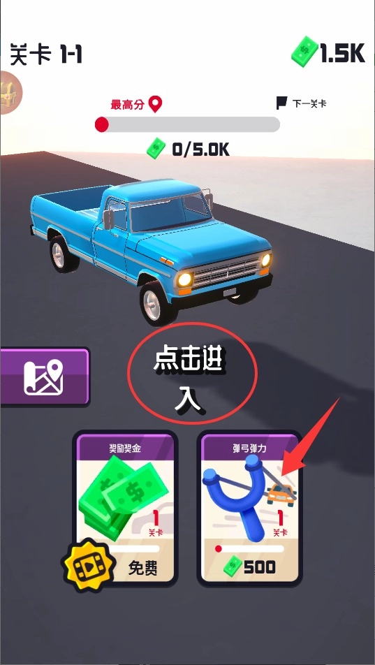 4、升级强化玩法:通过赚取的金币来提升弹弓威力,增强车身强度。经强化后的车辆,能制造更大程度的破坏,从而获取更高分数。