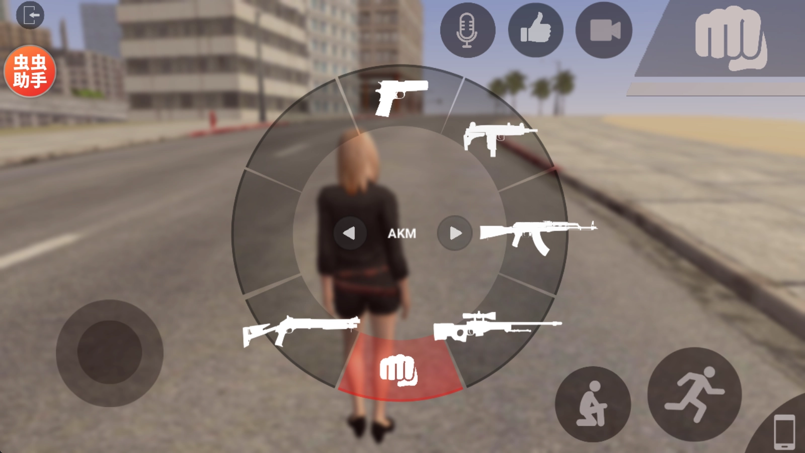 3、当拿出武器后,便会出现与之对应的瞄准按钮与射击按钮。