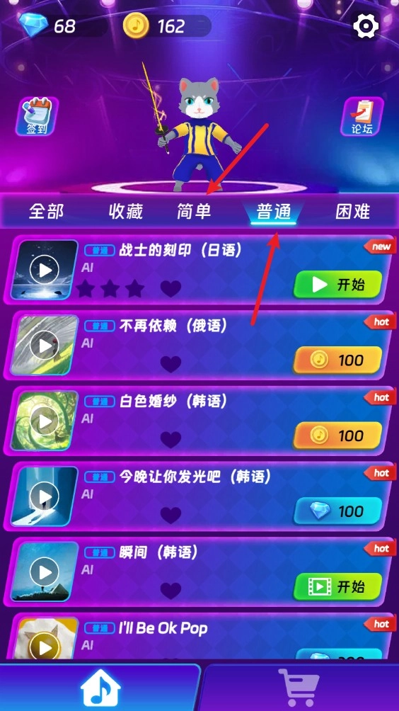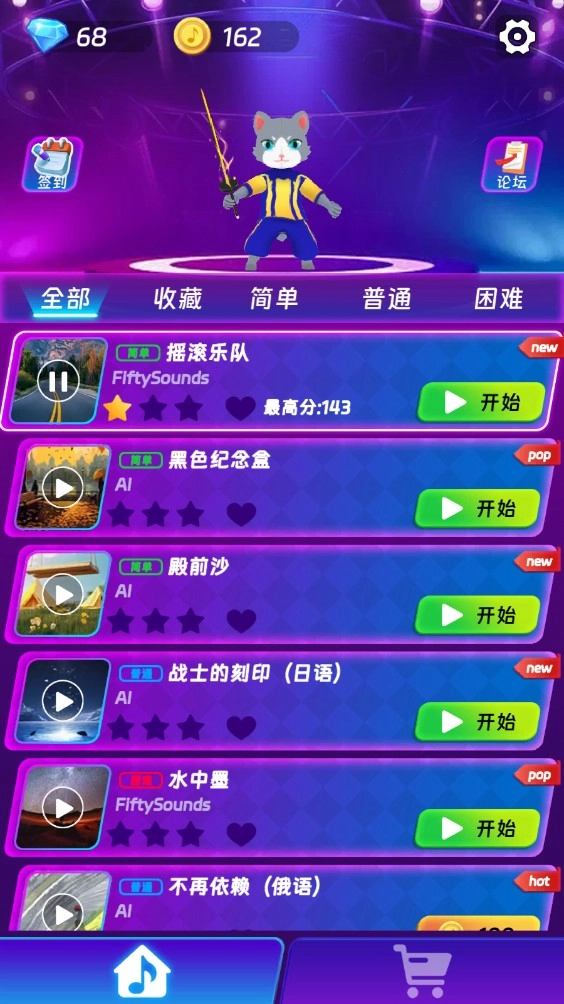 1、踏入游戏之后,最先能够在琳琅满目的曲库内,挑选你钟爱的音乐开启挑战。不管是节奏感十足的电子乐,亦或是温婉动人的抒情歌曲,总会有一首契合你。