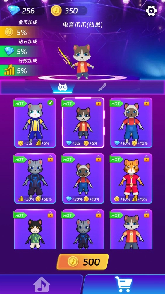 7、在游戏里,你能够解锁并购买各式各样风格不同的猫咪角色。每一只猫咪都具备独一无二的技能或者属性加成,能在你闯关的过程中给予更多帮助,增添更多乐趣!