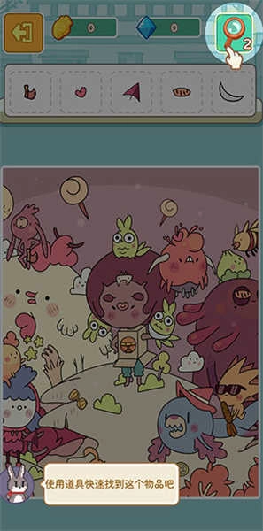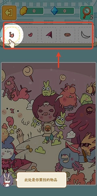 1、玩家进入游戏后,能够点击“寻物玩法”,接着在下方画面里依据上方物品栏所列出的物品进行操作。