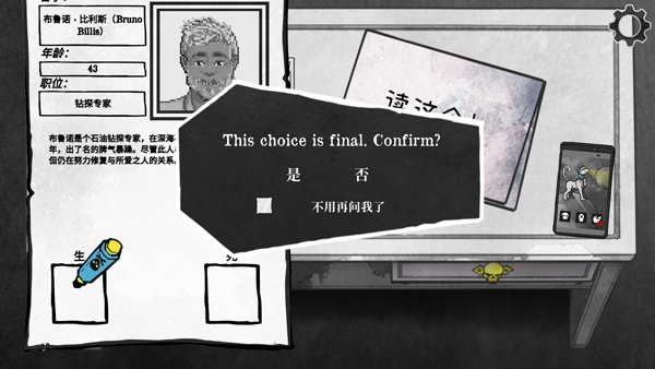 《死亡与税赋(Death and Taxes)》中文版是一款基于选择来推动剧情发展的独立叙事类游戏,它从steam平台移植而来,有着独特的手绘风格,营造出荒诞且富有哲理的氛围。在《死亡与税赋》中文版里,玩家会化身“死神”代言人,任务是依据一份份人类档案,去决定谁能继续存活,谁将就此终结一生。《死亡与税赋》中文手机版中,每次决策不仅影响个体命运,还会对整个世界局势引发连锁反应。该中文版游戏融入了大量道德抉择要素,玩家得在良知、规则和目标之间进行权衡与抉择。