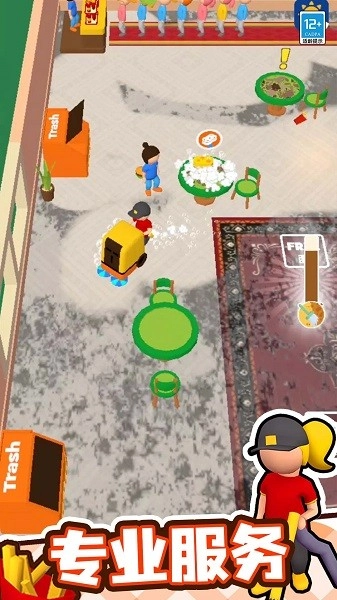 想体验创意十足又趣味满满的模拟经营游戏吗?在这里,你将开启一段从无到有的超级饭店经营之旅!游戏初始,你会得到一片空地。首先,你要学会清扫场地、合理布置空间,把这片空地打造成整洁有序的区域,进而开启饭店的建设。随着饭店规模逐步扩大,你可以招募各类员工为你效力,无论是负责收银的收银员,还是保持环境整洁的清洁工。不仅如此,你还能对员工进行升级,提升他们的工作速度与清洁能力,大大提高运营效率,从而接待更多的客人!