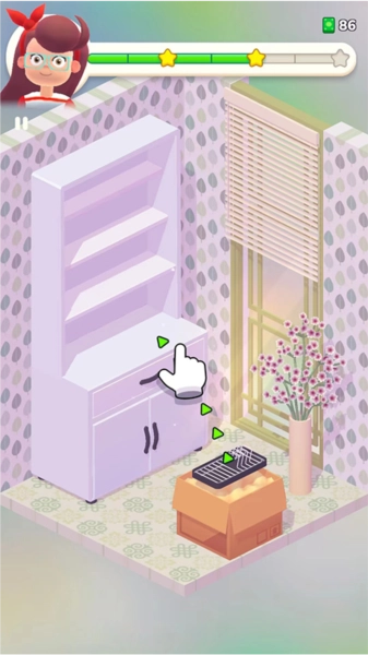 当收纳、设计与整理的玩法巧妙融合:游戏创新性地把收纳、设计以及整理这三大玩法相结合。在进行装修之前,玩家需要把旧物品按照类别区分,依次装进箱子并完成打包。紧接着,依据房间的不同类型,挑选与之匹配的装修风格。值得一提的是,每个装修方案都会为玩家提供三个选择,玩家能够自由地去尝试各种不同风格,而且还可以通过对家具摆放位置进行合理规划,以此来提高装饰效果。
