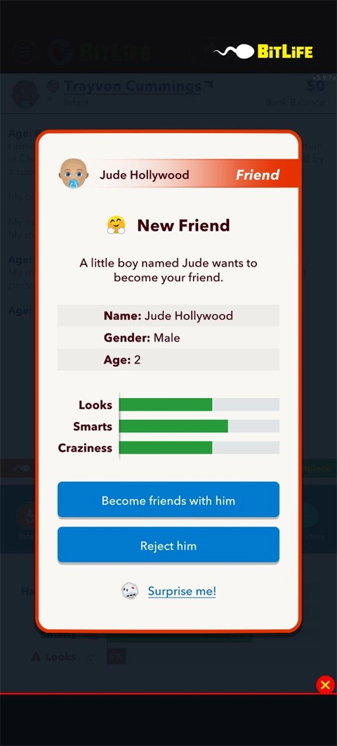BitLife汉化版是一款充满趣味的模拟人生游戏,玩家在其中能够自主决定自身的人生走向。不管是立志成为奉公守法的市民,还是渴望成为金融领域的巨擘,亦或是想要在政治舞台上大显身手,玩家皆可在游戏里达成自己向往的生活,仅需做出恰当的选择。游戏自玩家的童年时期开启,一路延续至中年甚至老年,在此期间,玩家将会体验各式各样丰富多彩的活动,从而选择属于自己独一无二的精彩人生。