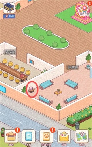 1. 开启游戏,待进入主界面后,寻找到休息室,随后点击休息室里任意一个区域即可进入。