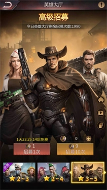 5、在英雄大厅,玩家能够开展英雄招募行动。游戏大厅设有三种英雄卡池,分别为2 - 3星、2 - 4星以及3 - 5星。英雄的星级与品质成正比,星级越高,品质越优。玩家只需消耗招募币,就能参与英雄招募。