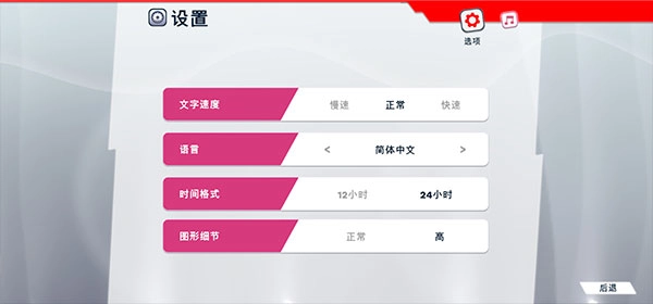 2、游戏初始即为中文显示,无需另行设置。若有需求,在主页点击“选项”,选择语言并切换为“简体中文”便可。