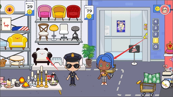 1. 这里有众多房间等你探索,点击即可与场景展开互动,快来打造专属于你的小镇吧。