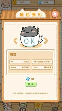 4. 提升你的茶杯猫等级,以此获取更强大的属性,每次升级都能对敌人造成沉重打击。