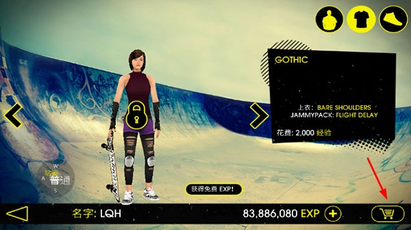4、借助海量专属内容,定制你的滑板手形象或滑板,涵盖来自授权品牌的服装、鞋履、滑板、支架以及轮子。