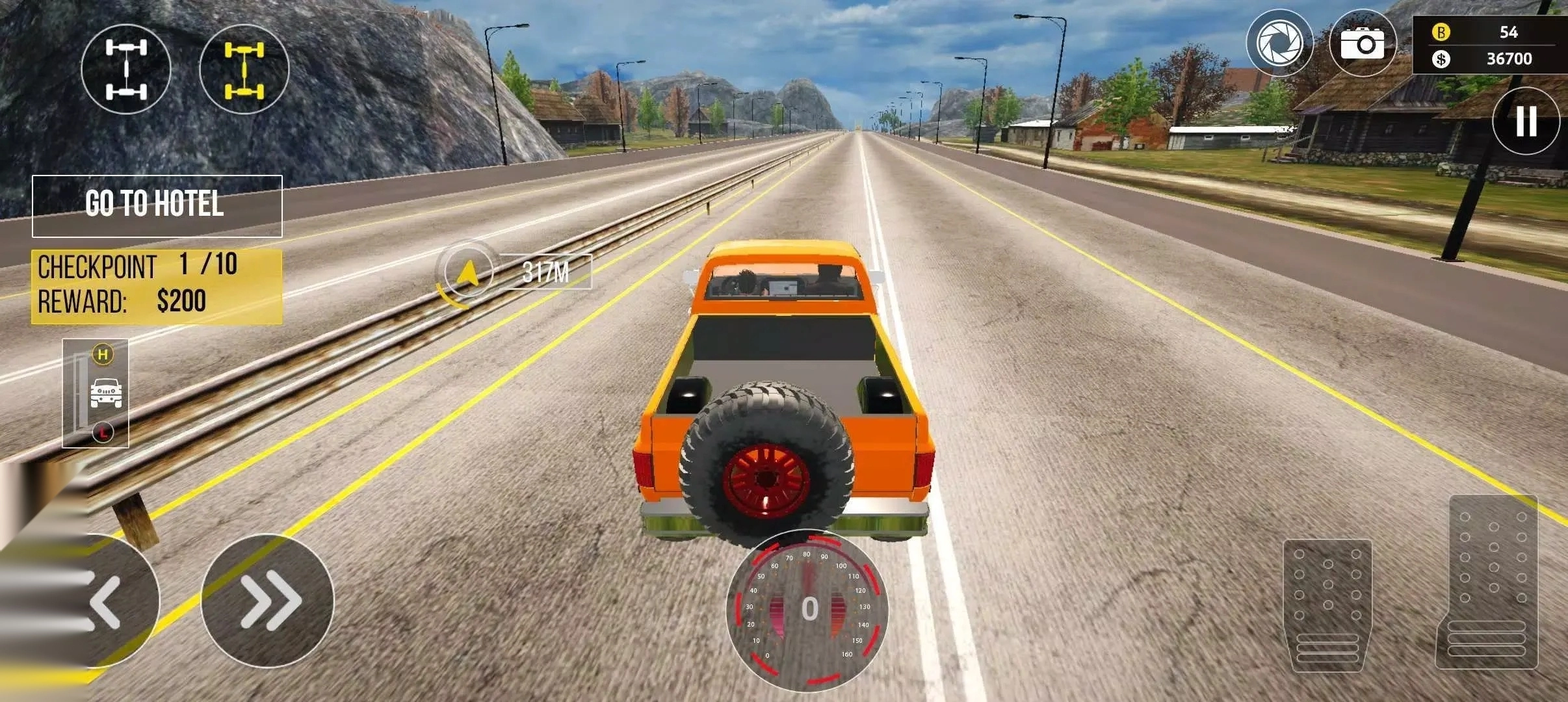 1. 涵盖各类常见的荒野地形,供玩家体验,不同地形的驾驶难度差异显著。 2. 学会驾驶四驱吉普车,掌握穿越森林小径、翻越落基山脉以及涉过泥泞河流的驾驶技巧。