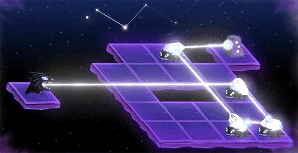 当左侧龙头所发出的光线,经过一系列反射后,最终能够进入右侧的终点,此时游戏即宣告胜利。