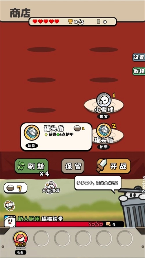 3. 在战斗开始之前,玩家能够获取10个大米币,这些大米币可用于购买卡牌。
