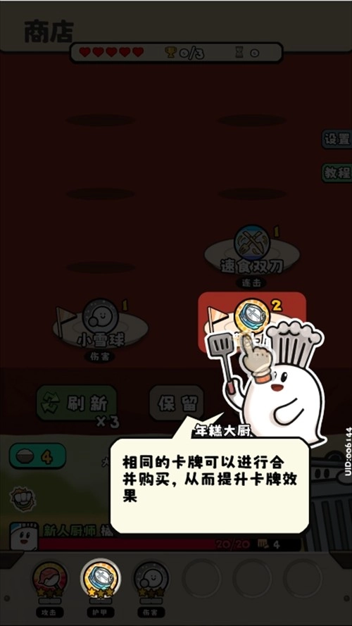 7. 相同的卡牌能够合并升级,以此增强战斗效果。