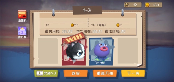 4、每道关卡都能获得一百多金币,点击观看广告,金币直接翻三倍!像我选的1 - 3关卡,跑完只需短短三十秒,三十秒就能轻松入账一百多金币。别再犹豫,赶快行动起来吧!