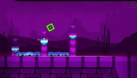 1. 第一种场景:场景里有按从低到高顺序排列的3个桩子。在此场景中,玩家需把握好时机,当方块跳上第一根桩子时,要持续按住右下角触屏,如此方块便能不断地进行三连跳,从而跃过桩子。