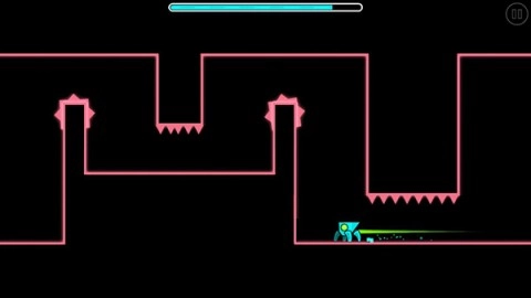 3、于关卡内,控制方块在各平台间进行跳跃,需快速做出反应,从而躲避障碍。