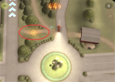 6、当你在游戏里开车时,会看到地上有个标着10圈、20圈的图标,这代表的就是分数,要是能在不撞车的前提下获取就再好不过了。