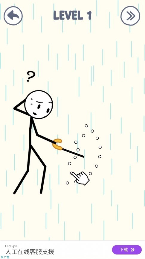 2、操作轻松简便,只需用手指画出正确线条,就能拯救火柴人。