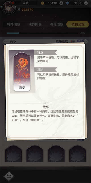 药草能够用于提升魂师的好感度,而好感度会对魂师的属性起到增幅作用。药草所增加的好感度数值在10至99点这个区间内。有时候,在向魂师赠送药草之后,还能和魂师一起进行游戏,要是得到魂师的赏识,就可以获取到同名碎片。