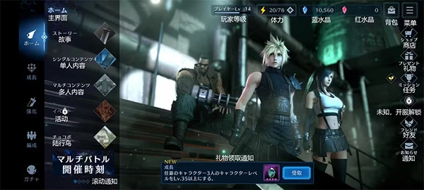 当前存在FF7、CCFF7、FF7FS(奇怪的是,竟然没有地狱犬和危机前夕???)。在完成剧情后,所有人物均可获取经验,且无需消耗体力。剧情章节会依据游戏运营的节奏逐步解锁,一定要优先完成故事模式 。
