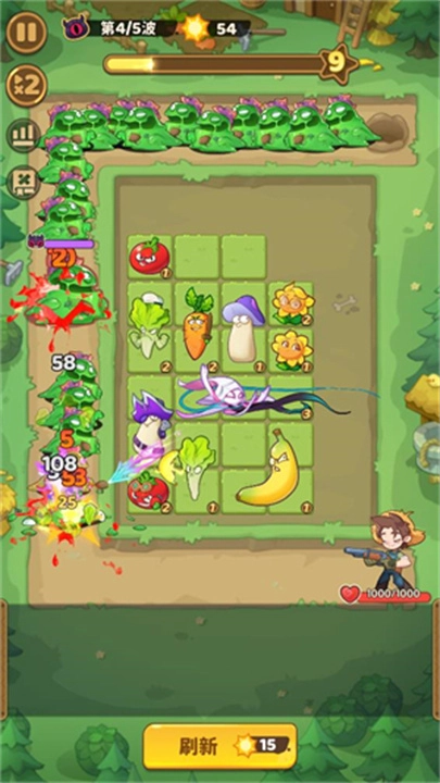 1、游戏运用萌趣的动画风格,植物角色的设计生动且可爱,然而每场战役皆紧张刺激,对玩家的节奏掌控能力形成考验。 2、通过收集植物精华,解锁更为强大的绿色伙伴,提升植物属性,同时收集稀有道具,以此逐步强化自身的阵容。