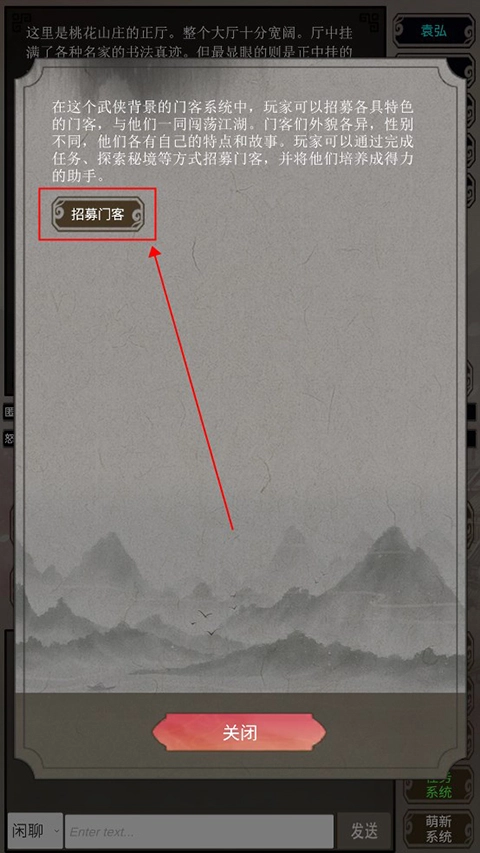 拜完师后我们可以用其中100元宝在任务相关—门客系统—招募门客。