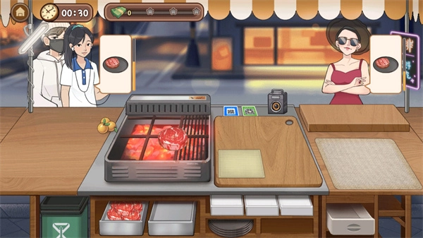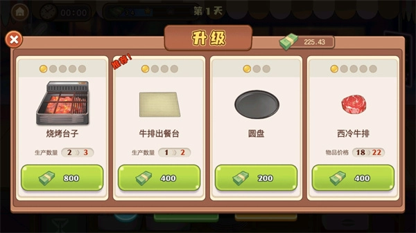 4、游戏里包含升级牛排摊这一养成要素,你能够全方位发展自己的摊位。