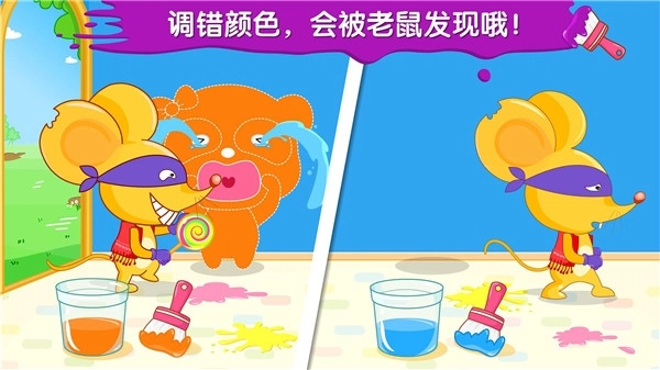 1. 调色小游戏,能让宝宝体验颜色变化所带来的趣味,有助于培养他们的色彩辨别能力。