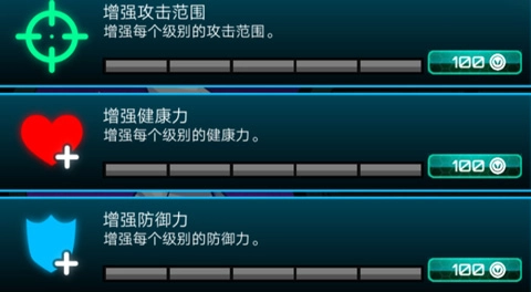 每个角色的属性都是不同的,每个属性都好几次可以加点,加点需要的金币也是逐次增加。总体加点分为两大类别,第一类攻击属性(子弹速度,子弹数量,子弹穿透),第二类防御属性(生命值,护甲值,子弹拦截)。本着保命第一的原则,我们先加防御类别的属性,然后在增加攻击属性。二者搭配加点,但是始终记得防御力要高于攻击力。
