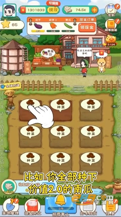 2. 玩家能够自由装扮农家乐,而对菜地进行恰当管理,会决定菜地为用户带来收益的多寡。